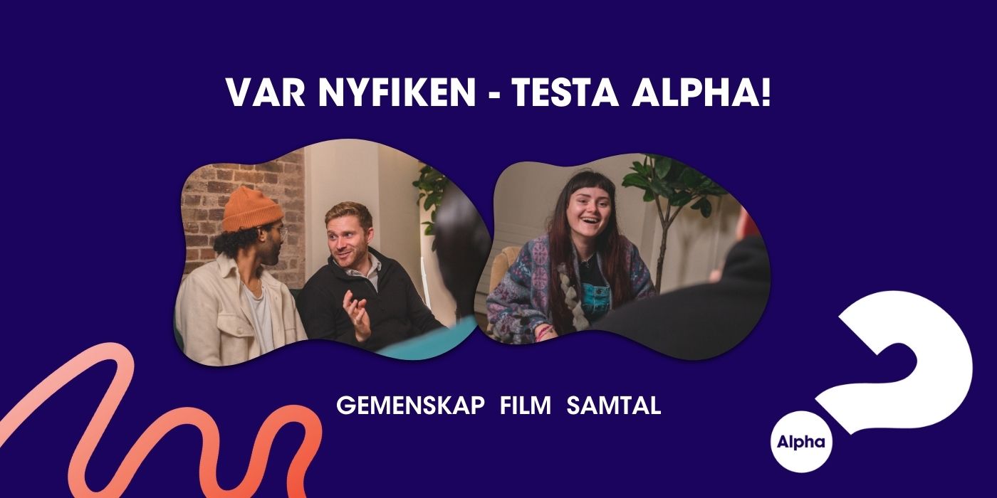 Alpha är en social mötesplats som utforskar grunderna i den kristna tron. Varje tillfälle fokuserar på en ny fråga om den kristna tron, som ”Varför dog Jesus?”, ”Hur och varför ska jag be?” och ”Hur kan jag stå emot det onda?” och är utformad för att skapa samtal. Kvällarna inleds med att vi äter tillsammans, innan vi tittar på en kort film som introducerar kvällens ämne och samtalar tillsammans i mindre grupper. Alpha är helt enkelt en öppen, informell och ärlig plats för att utforska och diskutera livets stora frågor tillsammans.