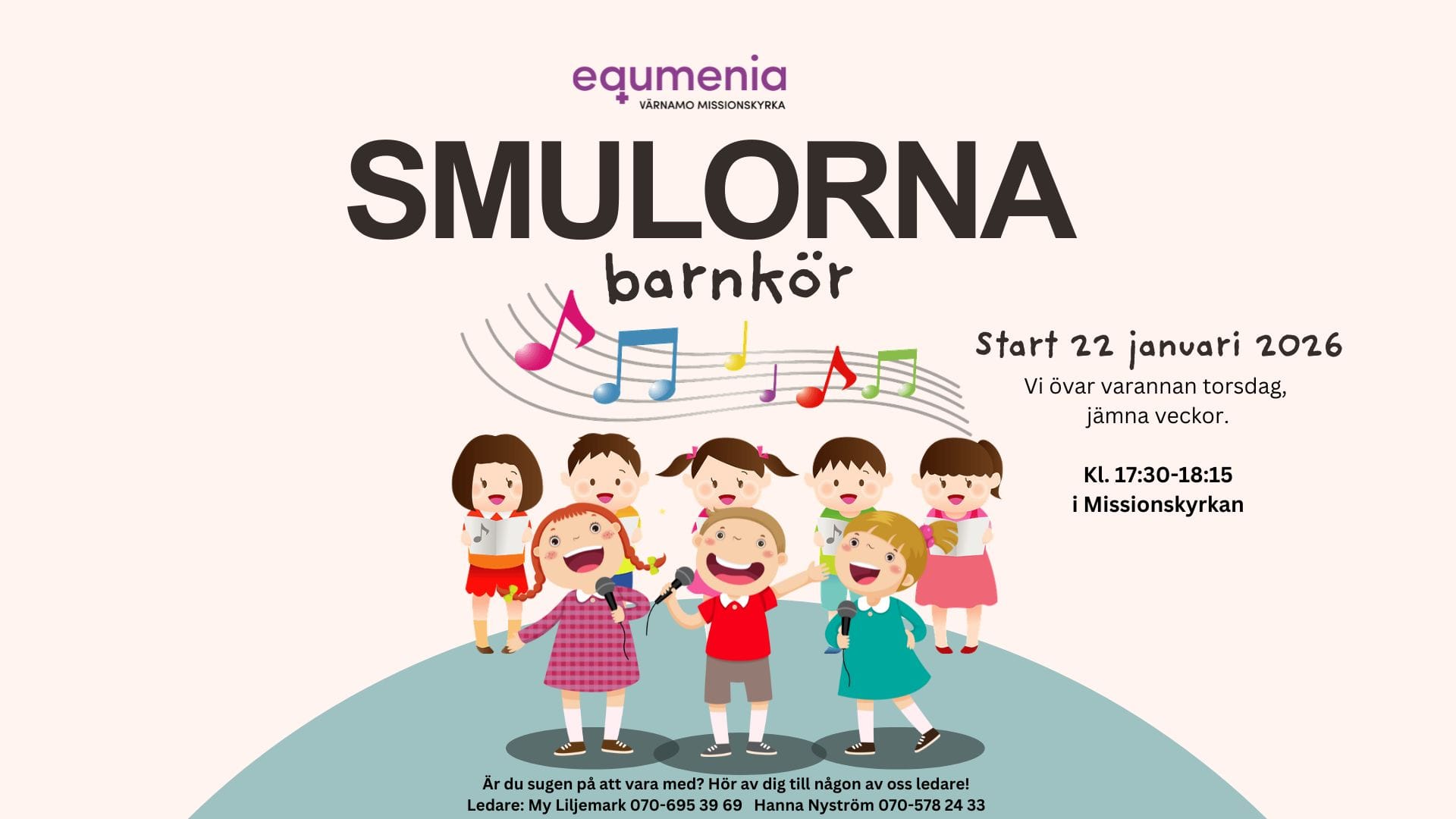 Vi är med och sjunger i gudstjänsterna 15/3 och 10/5 (i Missionskyrkan) plus att vi åker i väg på barnkördag i Hovslätt lördagen 24/1. För mer information kontakta någon av oss ledare.