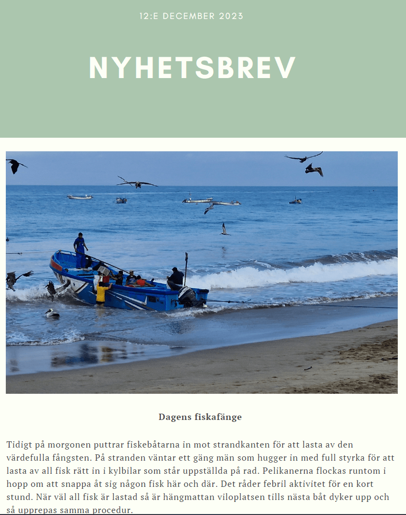Nyhet Hälsning från Gunilla & Pepe i Ecuador (dec-23) Publicerat 14 december, 2023 Tryck på brevet nedan för att läsa hela brevet. Dela