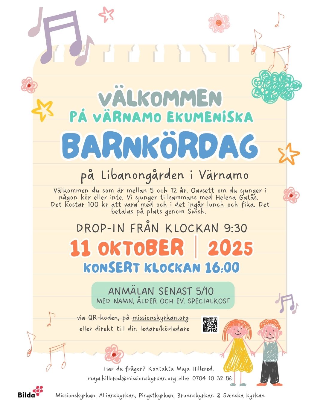 Välkommen du som är mellan 5 och 12 år på Värnamo Ekumeniska Barnkördag.