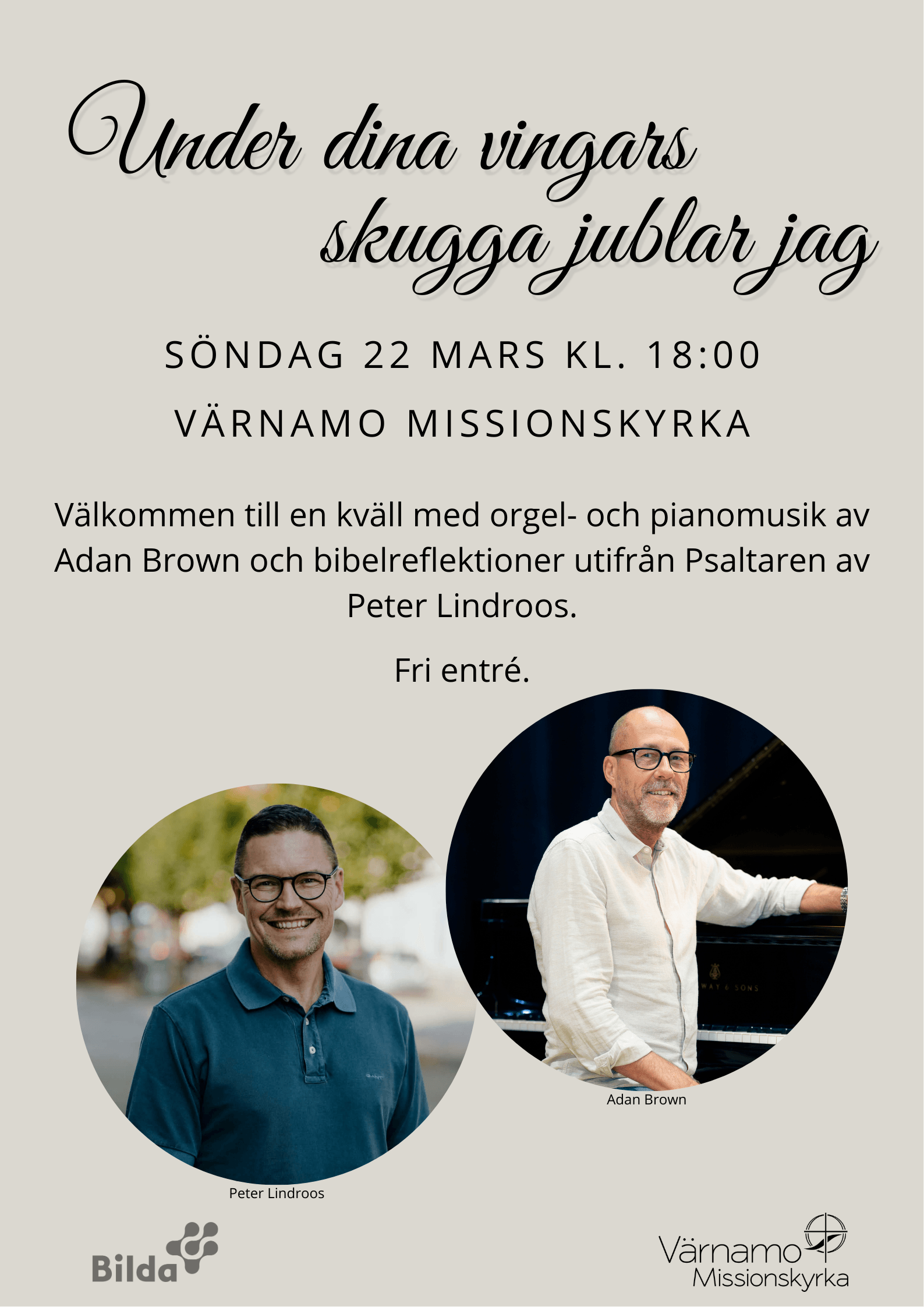![]() ![]() Välkommen på konsert med Peter Hallström och en projektkör från Värnamo Missionskyrka. Fritt inträde! Insamling till Läkarmissionens arbete under konserten. Varmt välkommen! |