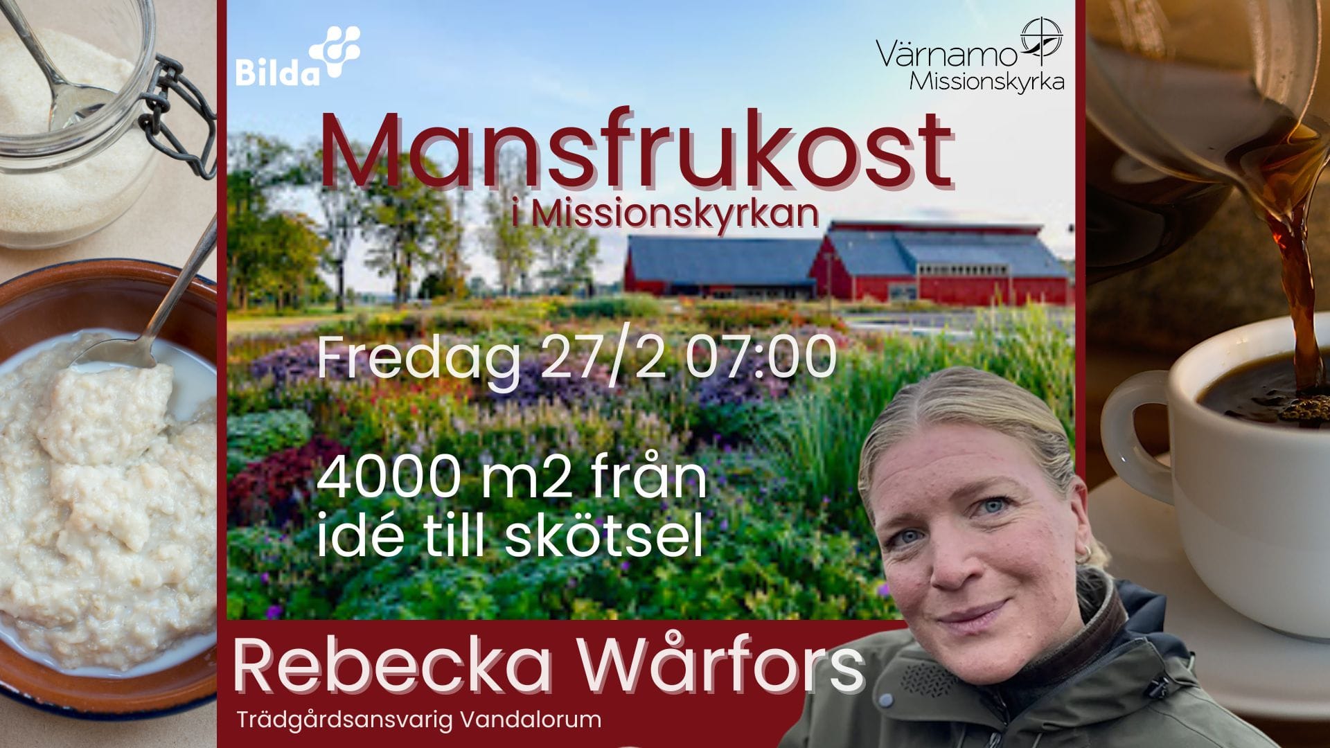 2 evenemang,![]() ![]() Rebecka Wårfors, trädgårdsansvarig på Vandalorum Vandalorums trädgård - från idé till anläggning till skötsel. En trädgård på 4000 kvadratmeter ![]() ![]() ![]() ![]() ![]() ![]() Vi träffas på fredagar kl. 10-11.30, (drop in fr. 9.30). Ingång exp mot ån Lagan. Gå gärna med i ”Sång & Lekstugan” på Facebook där vi uppdaterar inför varje träff. Hoppas vi ses! |
