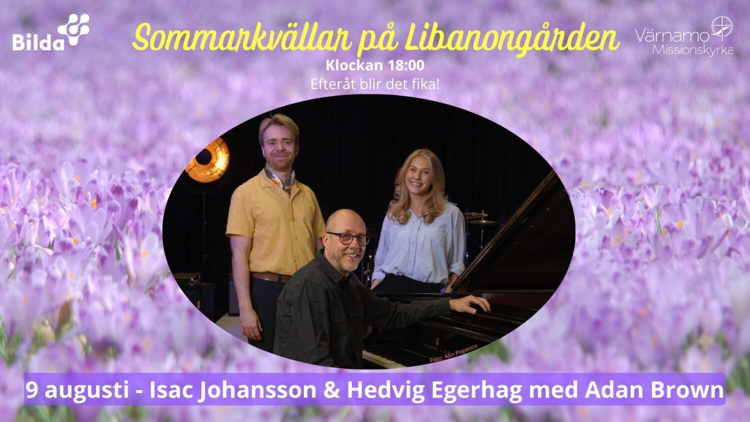Söndagen den 9 augusti klockan 18:00 är du välkommen till Libanongården för att lyssna till Isac Johansson & Hedvig Egerhag som ackompanjeras av Adan Brown.