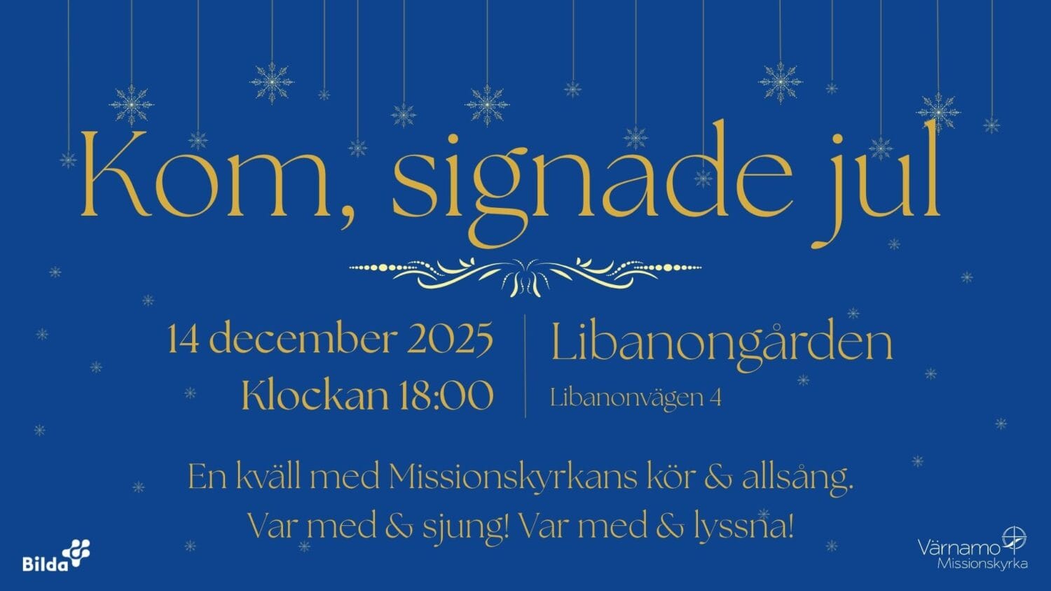 Välkommen på julkonsert med Missionskyrkans kör och allsång! Söndagen den 14 december klockan 18:00 på Libanongården.
